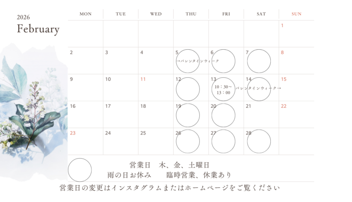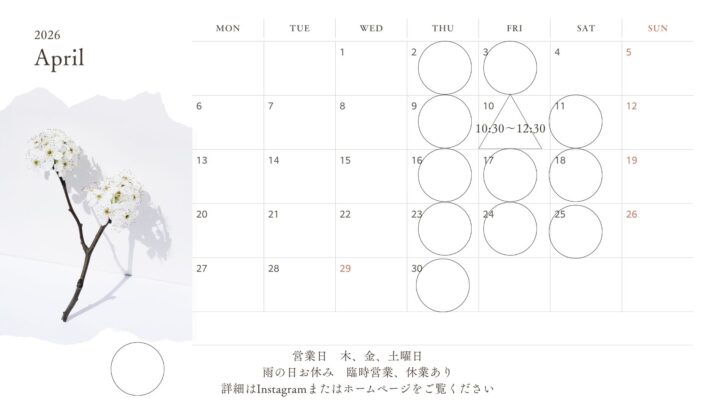 【最新の営業日はInstagramをご確認ください。】