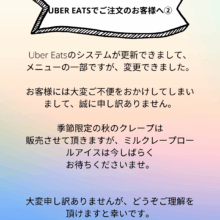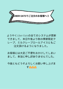 本日午後より秋の季節限定クレープやミルクレープロールアイスなど、すべての種類のメニューがご注文できるようになりました。