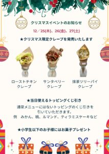 ・クレープ一つにつき一枚の通常メニューにはないトッピングのくじを引いていただきます。