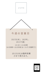 今週土曜日はカレンダー通りお休みとなりますので、どうぞよろしくお願いいたします。