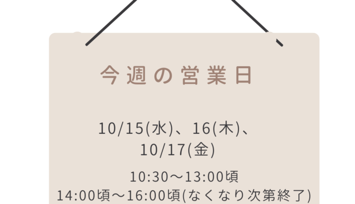 今週は雨の予報が多いため、明日水曜日に臨時営業させていただきます。